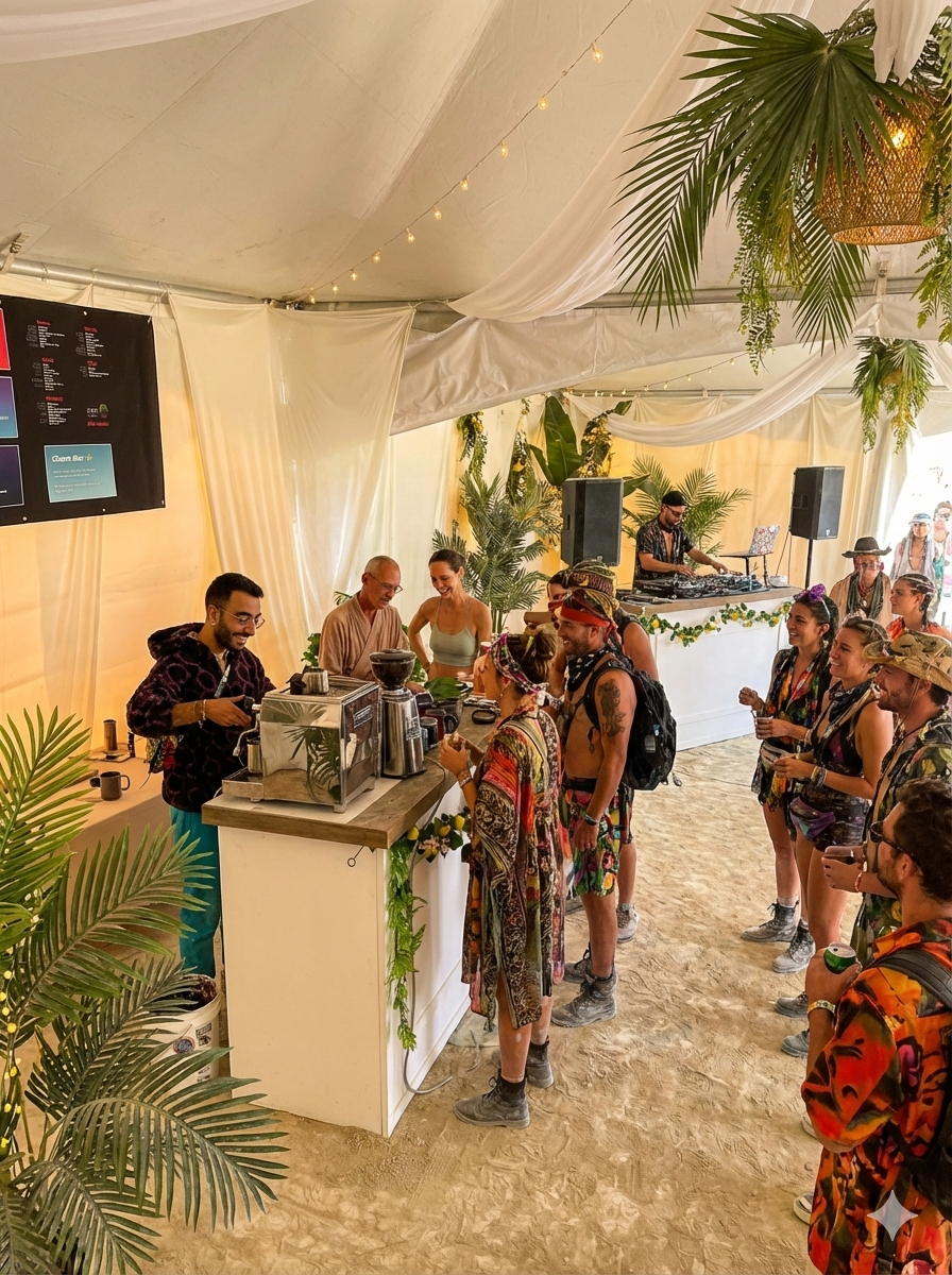 A refreshing new twist toward caffeinating the playa each morning (with bubbles!) 🔋🍾🫧
